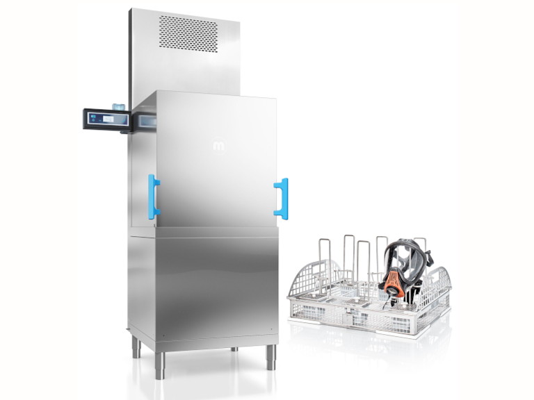 Die MEIKO TopClean H reinigt und desinfiziert Teile der persönlichen Schutzausrüstung in einem validen Prozess innert kürzester Zeit: bis zu 60 Masken schafft sie in der Stunde. Durch die Verriegelung der Haube wird der Reinigungsprozess strikt eingehalten und Keime, Feinstäube und Abbrand-Rückstände zuverlässig entfernt. Zudem unterstützt sie ergonomisches Arbeiten mit ihrer intelligenten Haubenautomatik.